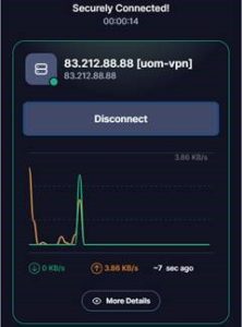 Η ένδειξη θα αλλάξει σε «Disconnect» και μετά από λίγο θα εμφανιστεί η ένδειξη «Securely Connected!», ενώ θα αρχίσει να εμφανίζεται μια γραφική παράσταση που επιβεβαιώνει την έναρξη της ομαλής επικοινωνίας με τον διακομιστή της υπηρεσίας.